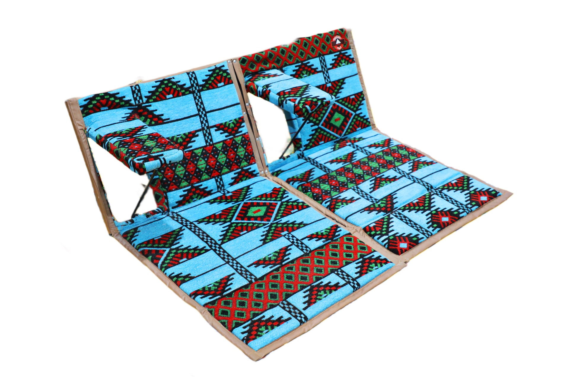 مدّة تراثية بلون سماوي مميز ونقوش سدو أصيلة، مكوّنة من فرشة أرضية واسعة مع تكايات جانبية لمزيد من الراحة.