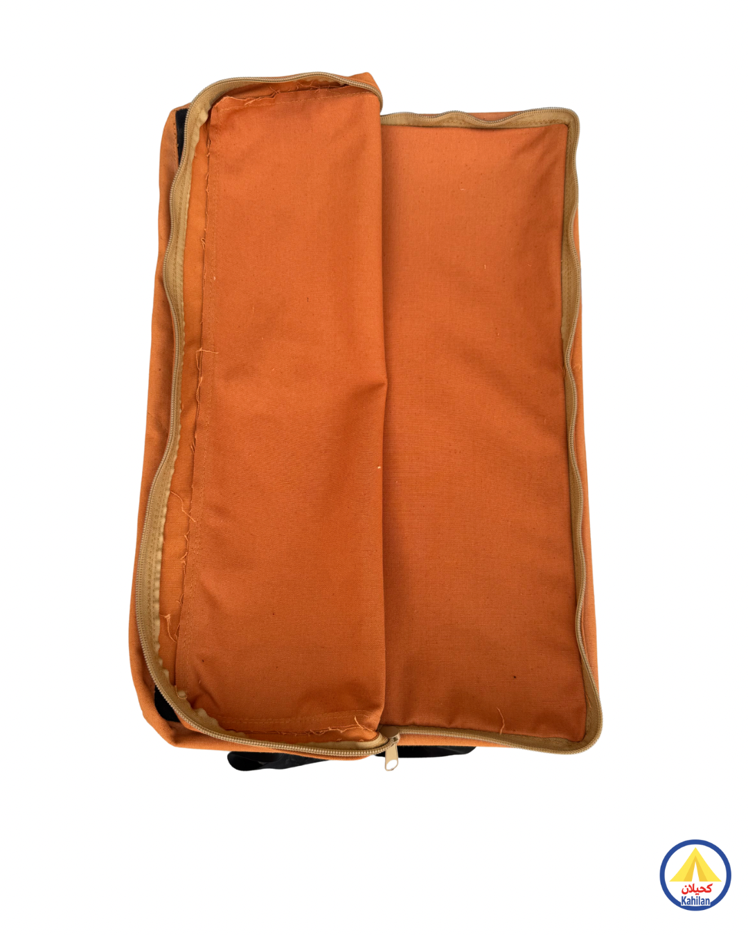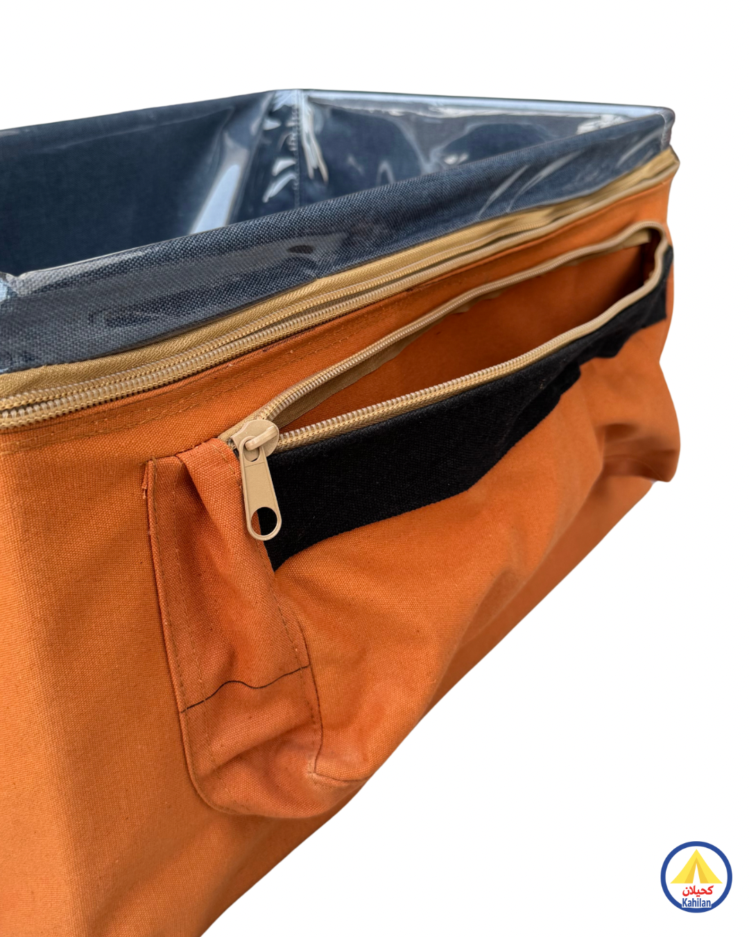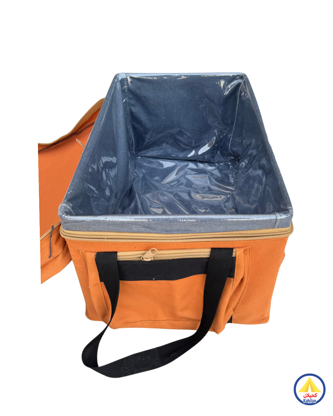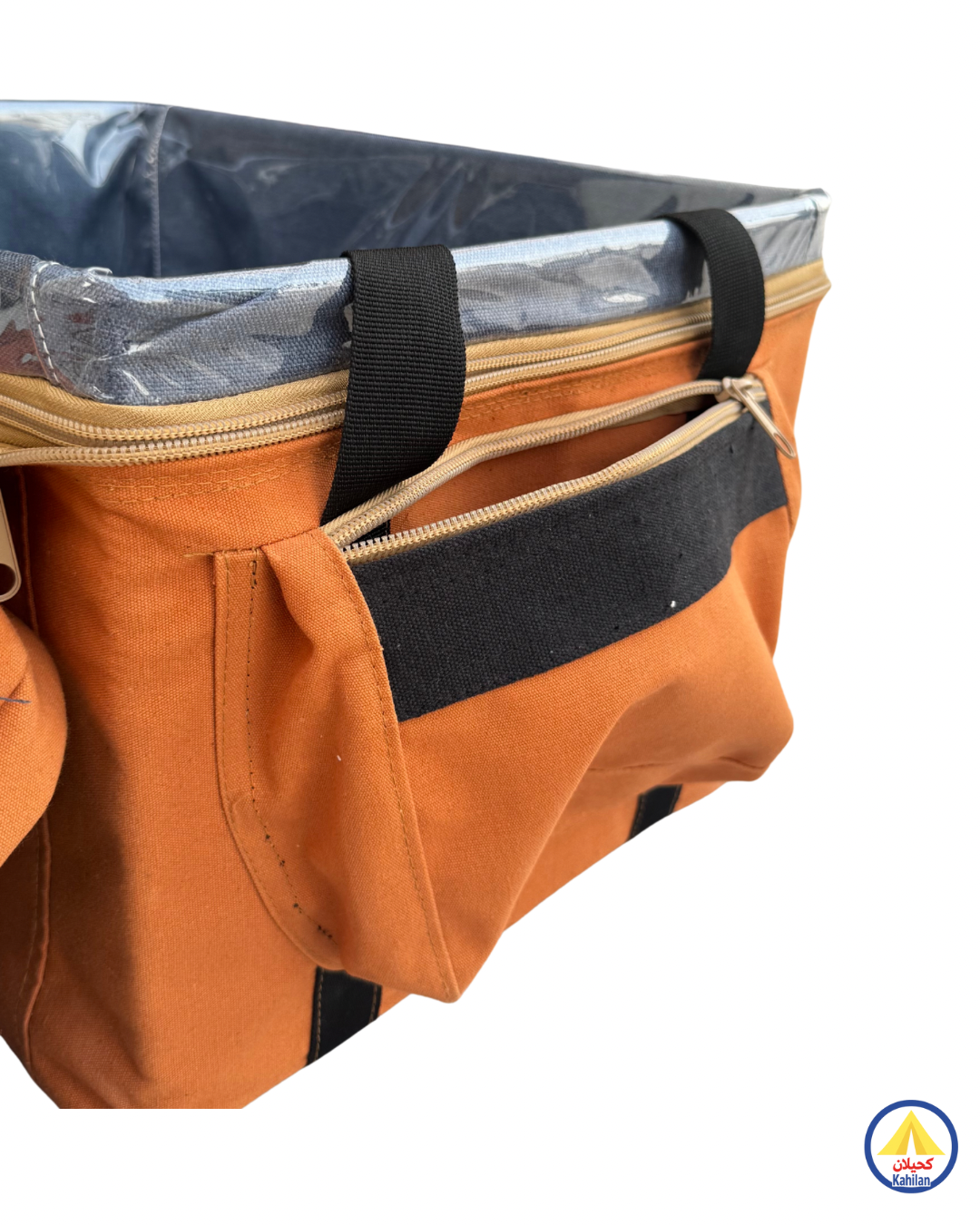 شنطة متينة وعملية بلون برتقالي جذاب، بسعة واسعة وجيب أمامي بسحاب لحفظ كل أغراضك من دلال وفناجيل وأدوات القهوة والشاي. مثالية للبر والبحر والطلعات، سهلة الحمل بحزام قوي ومريح